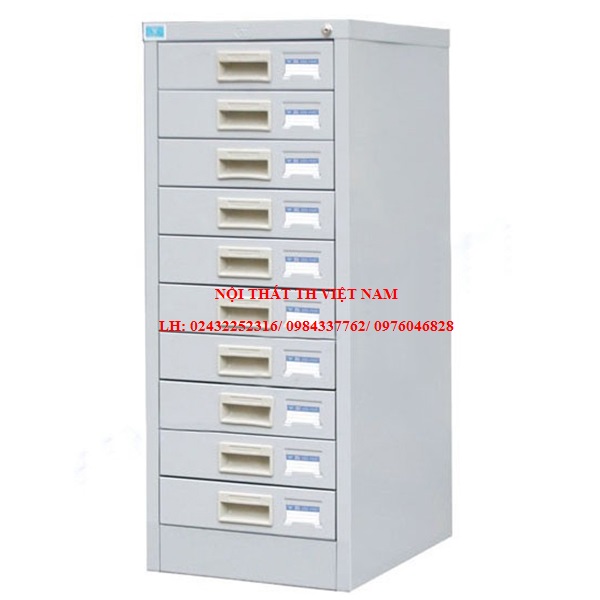 - Tủ gồm10 ngăn kéo đựng file chuyển động bằng cơ cấu ray thép uốn, mỗi ngăn có một tay nắm nhựa và tủ sử dụng chung một khóa dàn.