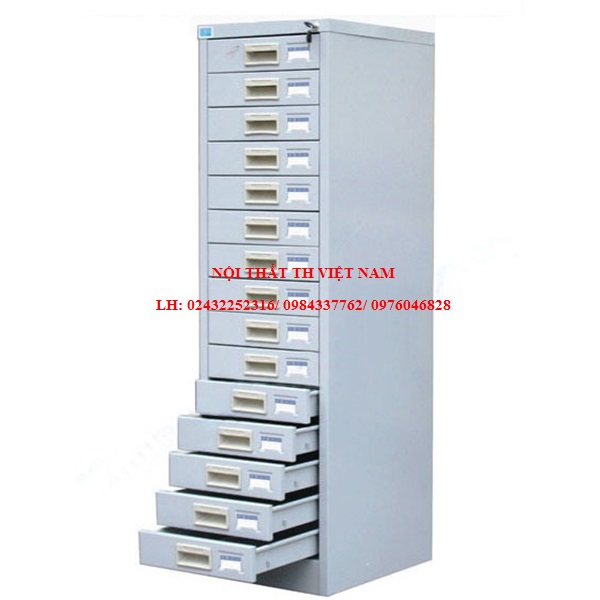 - Tủ gồm 15 ngăn kéo đựng file chuyển động bằng cơ cấu ray thép uốn, mỗi ngăn có một tay nắm nhựa và tủ sử dụng chung một khóa dàn.