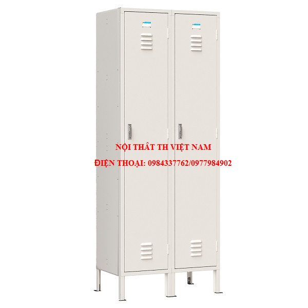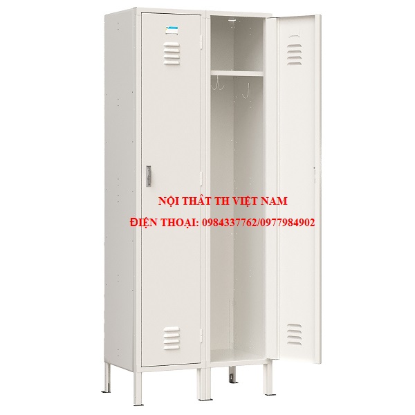Tủ sắt sơn tĩnh điện màu trắng ngà.Tủ có 2 khoang cánh mở, bên trong mỗi khoang có 1 đợt cố định và 3 móc treo áo đơn, 1 móc treo áo đôi. Cánh sử dụng tay nắm cao cấp kèm hệ thống thanh khóa tự sập khi đóng